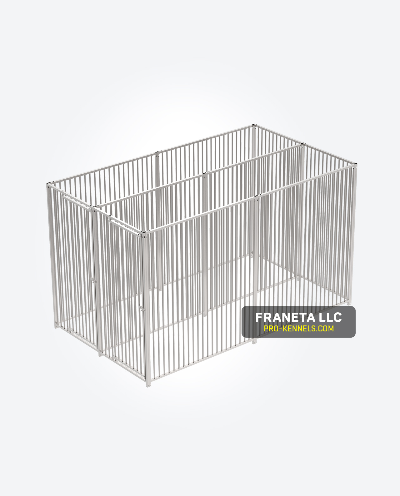 Complete Multiple (2-Run) 3′W x 10′L x 6′H free standing Hot-Dip Galvanized Vertical Bars/European Style Dog Kennel with stainless steel door handle and stainless steel hardware.