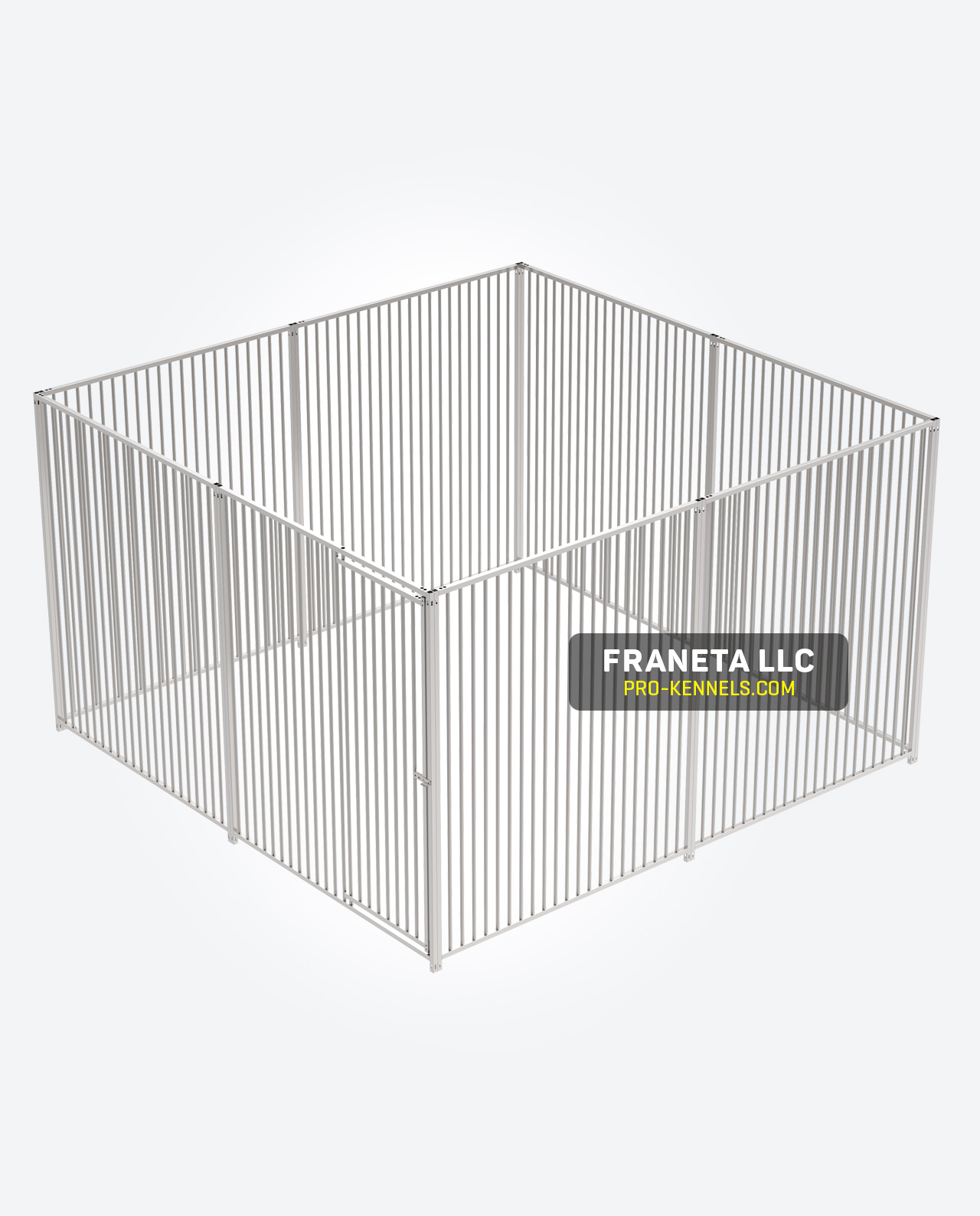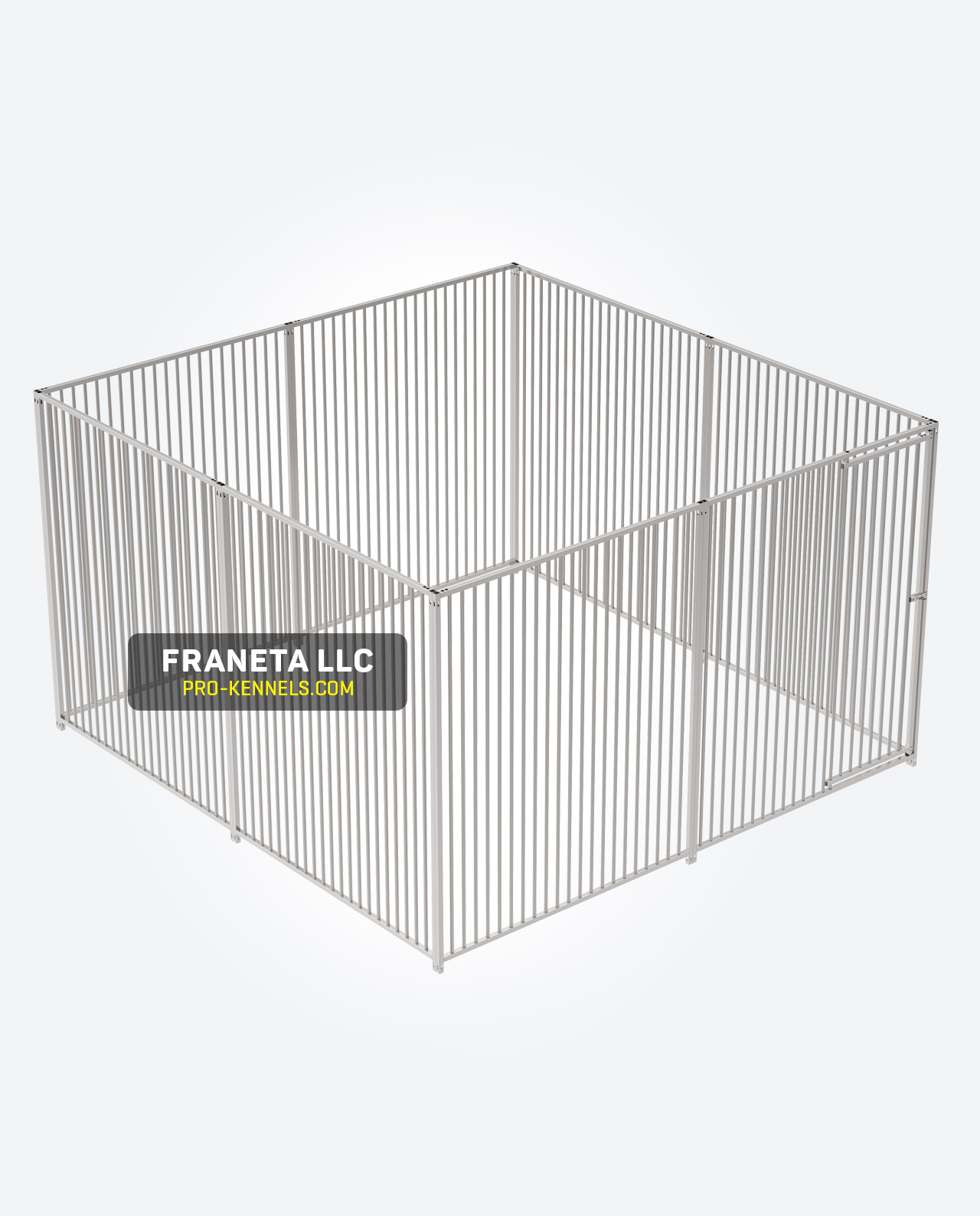 Complete Single 10′W x 10′L x 6′H free standing Hot-Dip Galvanized Vertical Bars/European Style Dog Run/Kennel with stainless steel door handle and stainless steel hardware.