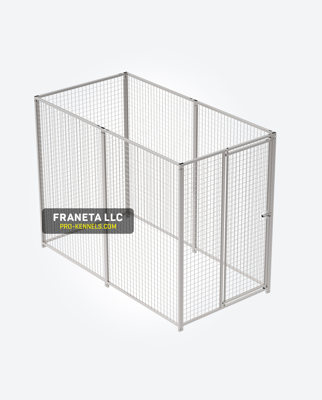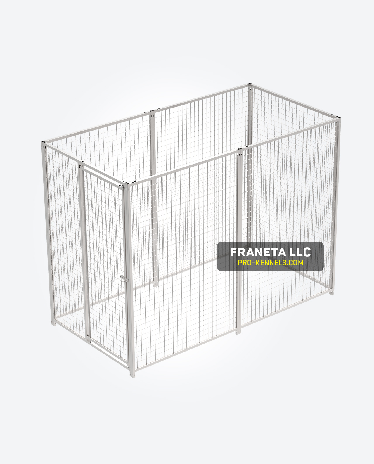 Complete Single 4′W x 8′L x 6′H free standing Hot-Dip Galvanized Wire Mesh Dog Run/Kennel with stainless steel door handle and stainless steel hardware.